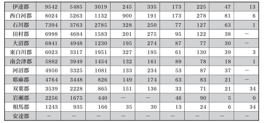 なお58、59ページの二つの表「福島県内の日刊紙販売報告部数 市・郡別」には「その他」の項目があるが、宮城県のブロック紙・河北新報を指すとみられる。新聞ごとの部数を記した別のレポートでは県内で販売されている河北新報の朝刊部数が787部となっており、その他の部数と一致する。2025年4月時点の表を見ると、相馬市で116部と県内2位で、新地町を含む相馬郡で34部と郡部にしては多いことからも類推できる。相馬市と新地町は距離的にも文化的にも宮城県と密接で、官公庁以外にも河北新報を購読している世帯が少数ながらある。