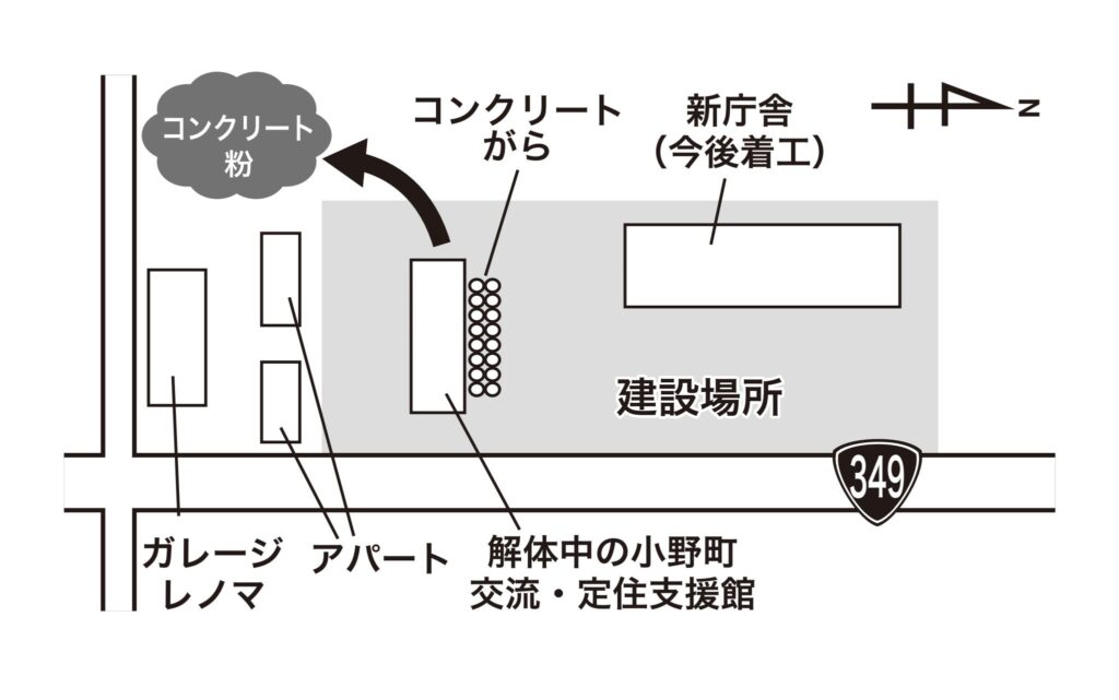 小野町の新庁舎建設をめぐりトラブルが起きている。建設場所に立つ建物の解体工事で出たコンクリート粉が隣接する会社やアパートに降り注ぎ、住民が工事の中断を申し入れたのだ。住民は被害の補償を求めているが、解体工事を行う業者は「保険でまかなえる金額しか出せない」と、両者の話し合いは平行線を辿っている。11月には補償の決着がつかないうちに解体工事が再開された。新庁舎は本体工事が始まる前からミソが付いた格好だ。